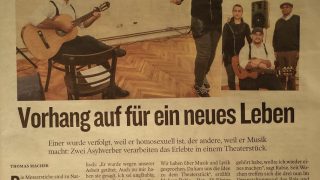 Mi, 16.12.2015, Kleine ZeitungEiner wurde verfolgt, weil er homosexuell ist, der andere, weil er Musik macht: Zwei Asylwerber verarbeiten das Erlebte in einem Theaterstück.